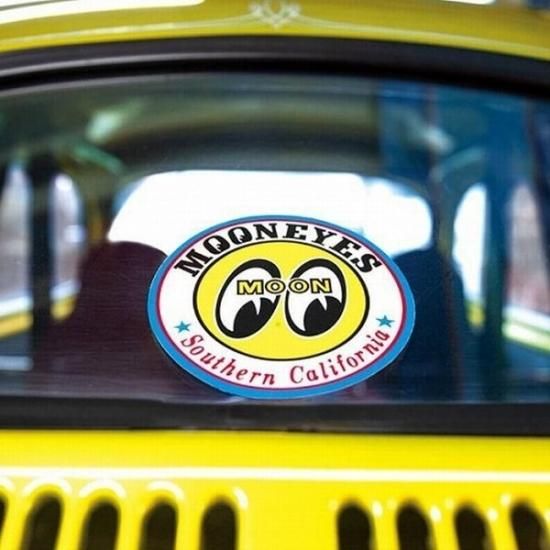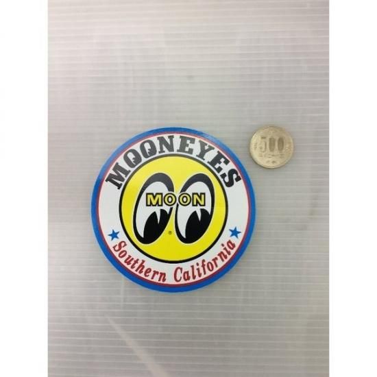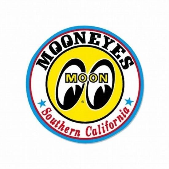 ムーンアイズ サザン カリフォルニア ステッカー お馴染みアイボール ロゴのステッカーに アクセントのレッドとブルーのラインが入り、 Southern California のレタリングが入っています。 サイドウインドーによく合う、ちょうど良いサイズの丸いタイプのステッカーです。 サイズ:φ10cm