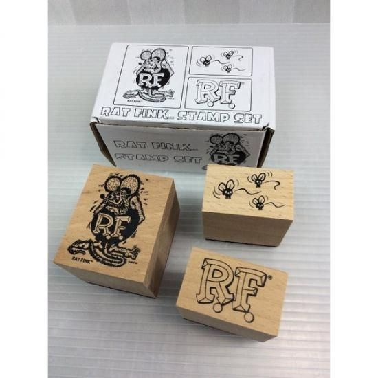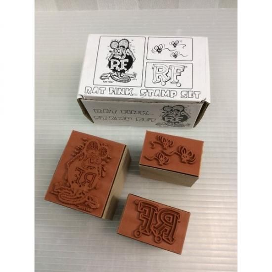 スタンディング ラットフィンクと ラットフィンクロゴ、スカルフライの3つのスタンプセットです。