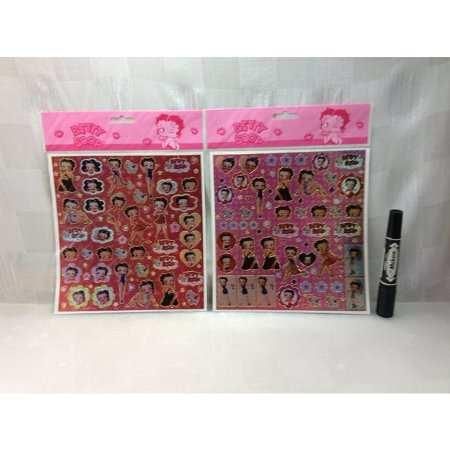 キラキラ仕様のベティちゃんステッカーです。ピンクベースとレッドベースの2種類をセットしました。台紙サイズ W20.5cm H21.5cm