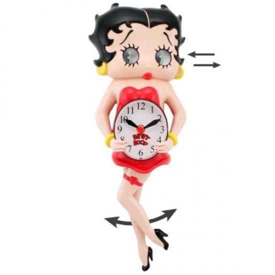 立体的でダイカットの全身ベティちゃんが足をユラユラ、目はキョロキョロさせて動くウォールクロックはとってもキュート♪