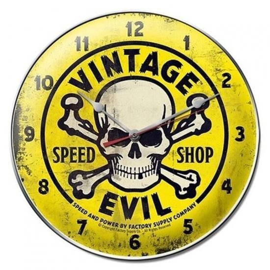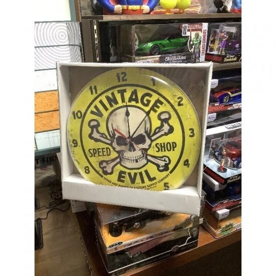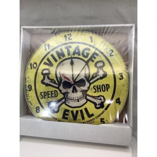 ガレージクロック VINTAGE EVIL YELLOW SKULL 時計 掛時計 アメリカン雑貨 アメ雑 ガレージ雑貨 315011