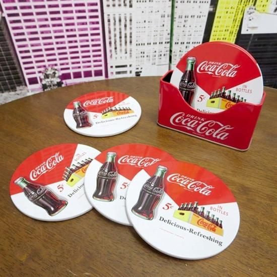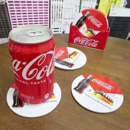 コースターにはコカコーラのデザインがプリントされててカッコイイ !