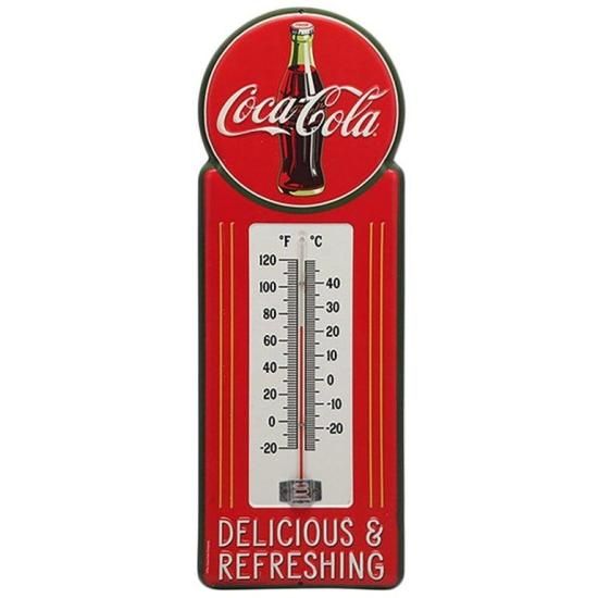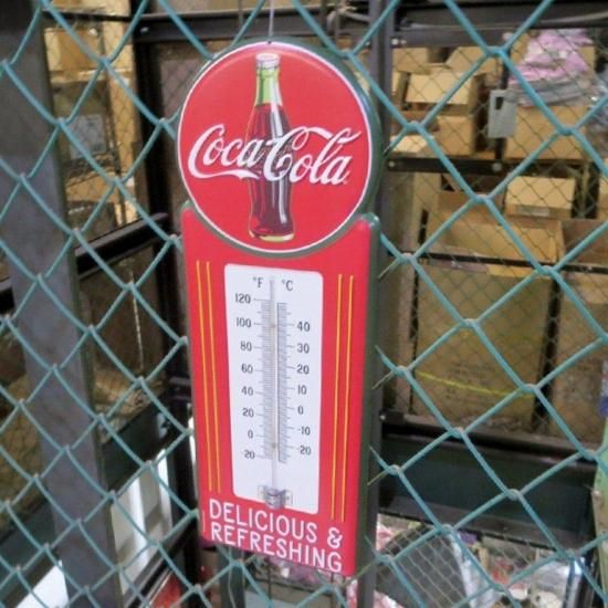 ダイカット&エンボス加工のコカコーラ メタルサイン 温度計付き看板♪