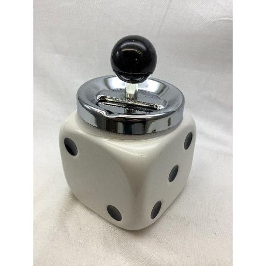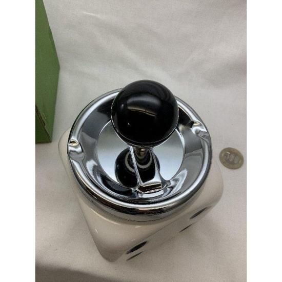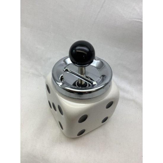 フタのつまみを押すと回転しながら下がる事で灰や吸殻を落とす事が可能。