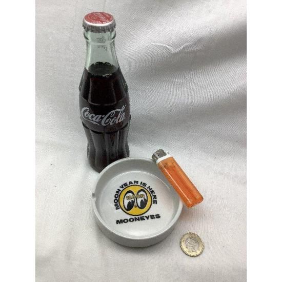 アイボールロゴが入った陶器製の丸型灰皿です。