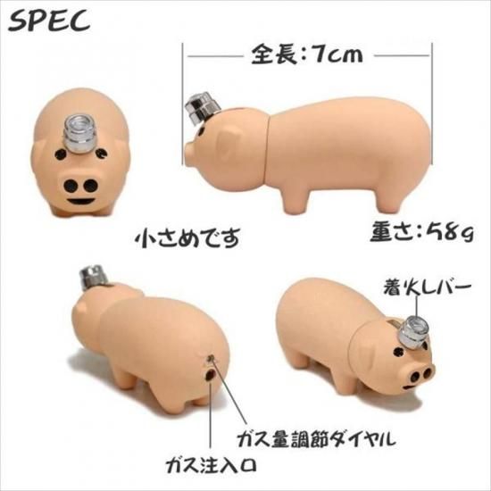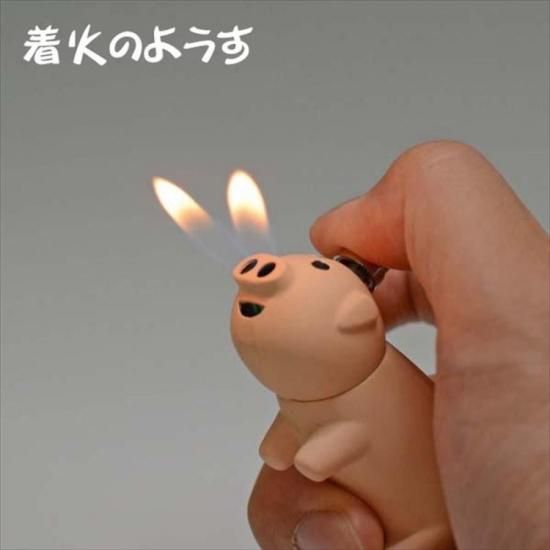 小ぶりでかわいい豚さんライター。頭部のレバーを後ろに引くと着火します。
